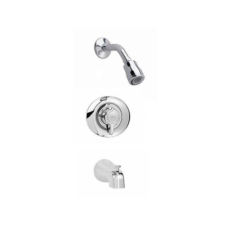 The American Standard Colony Bath and Shower Trim Kit with Flo-Wise Water Saving Showerhead in Polished Chrome will give your shower a bright reflective look. This trim kit includes a brass wall escutcheon, diverter tub spout, lever handle and Flo-Wise showerhead with arm and flange.