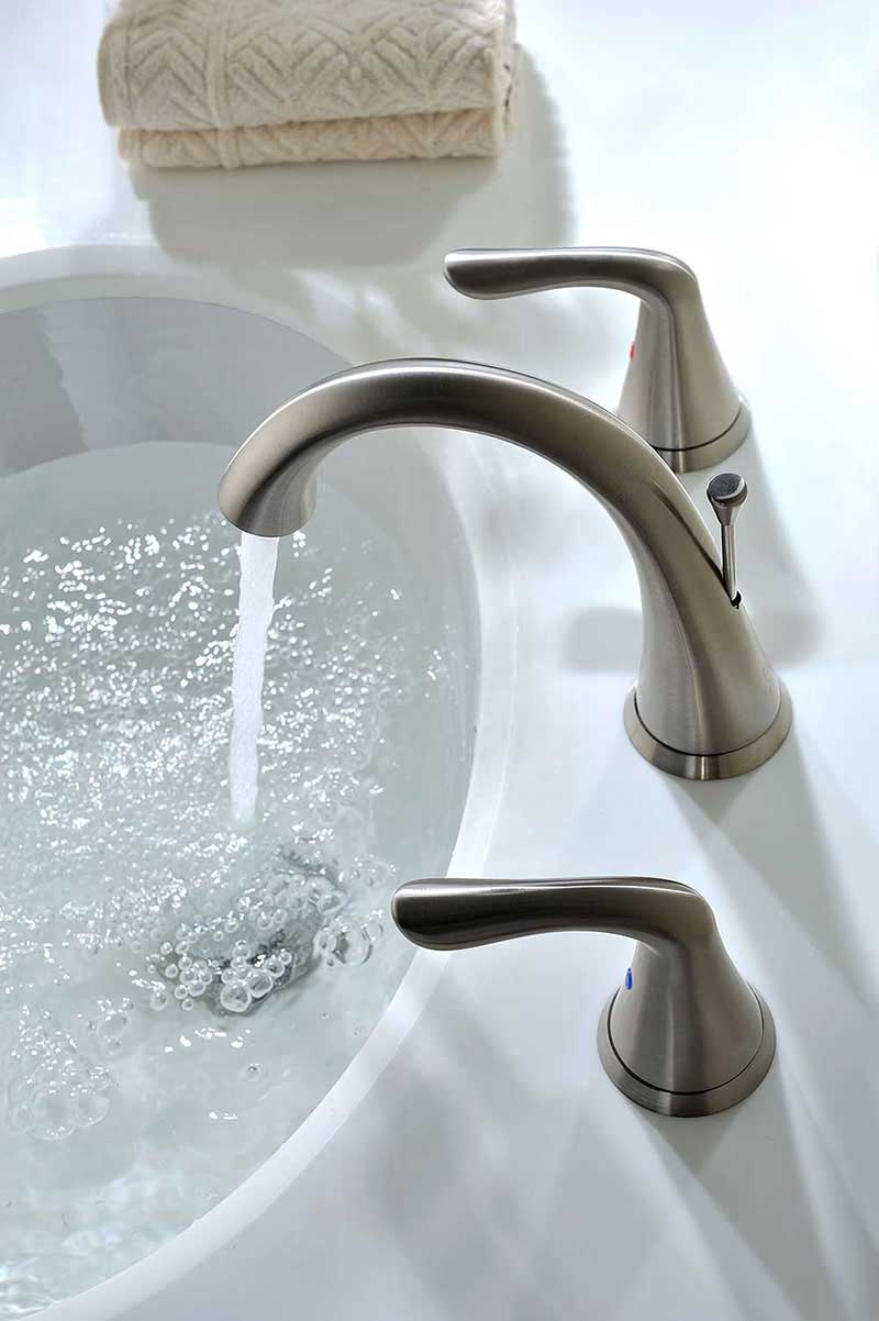 ANZZI is committed to introducing the latest in European bath fixture design to the North American home. ANZZI presents the Symphony Series 2-Handles Bathroom Sink Faucet. Crafted using lead-free RHINO ALLOY certified brass as the interior and our Traditional Brushed Nickel rust resistant finish. This this all metal combination of high quality materials ensures you will enjoy a flawlessly performing faucet for many years to come. The elegantly simple dual handle design allows for complete and easy control of both water flow and temperature while maintain the fine minimalist aesthetic to match with any modern or contemporary decor style. The ANZZI Symphony Series is listed certified under cUPC, NSF, AB1953, Watersense for installation within North America.- Traditional Brushed Nickel finish