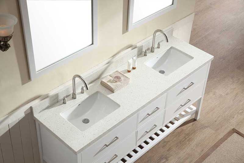 - Pure White Cultured Marble Countertop w/ 1.5" Miter-Cut Edge and Matching Backsplash.