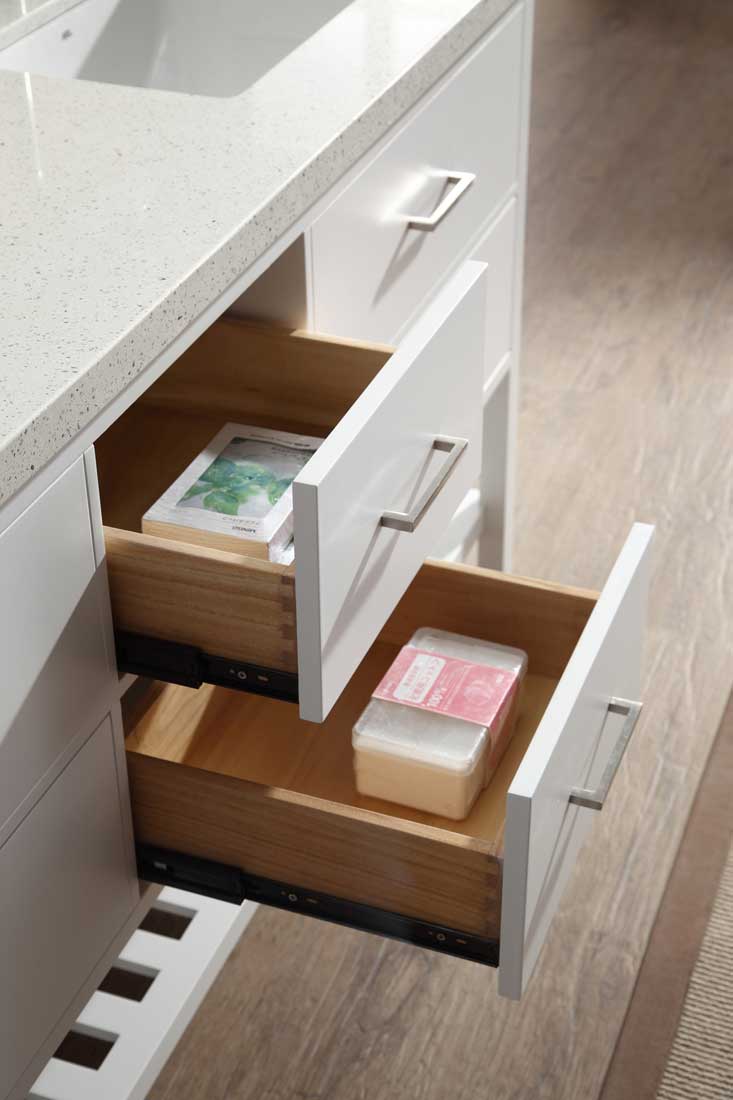 - Four Full-Extension, Dove-Tail Construction, Soft-Closing Drawers and Two Decorative Faux Drawers.