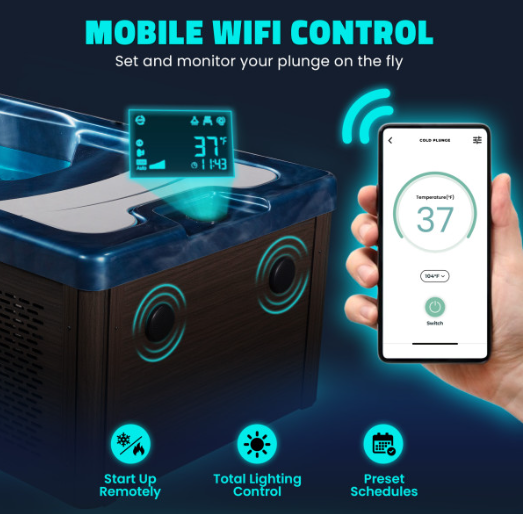 Relax and recover with the Borealis 69-in. cold plunge and hot tub with built-in KPlunge chiller in white. Take full control with the WiFi app and adjust temperature 37°F to 104°F, lights, Bluetooth speakers, and 2-jets easily. An ozone system and water filter keep water fresh and clean. Use it indoors or outdoors— quick-connect hoses, wheels, and a carry handle make it easy to install and move wherever you need. Perfect for athletes, spas, or any home that wants easy, daily wellness.