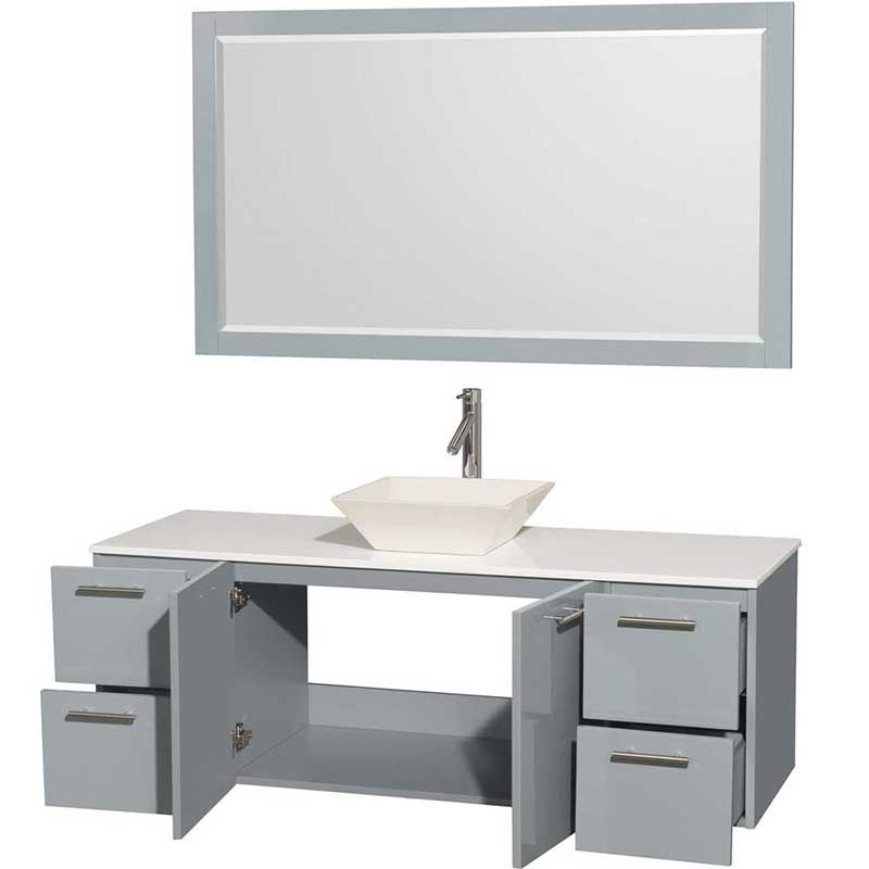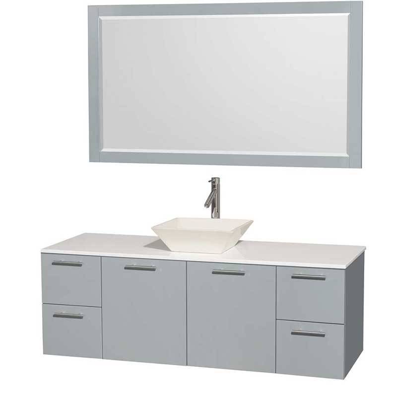 The Amare wall-mounted vanity family delivers beautiful glossy exteriors with modern brushed chrome door pulls. Each vanity provides a full complement of storage areas behind sturdy soft-close doors and drawers. This versatile vanity family is available with distinctive vessel sinks or sleek integrated counter and sinks to fulfill your design dreams. A wall-mounted vanity leaves space in your bathroom for you to relax. The simple clean lines of the Amare wall-mounted vanity family are no-fuss and all style.