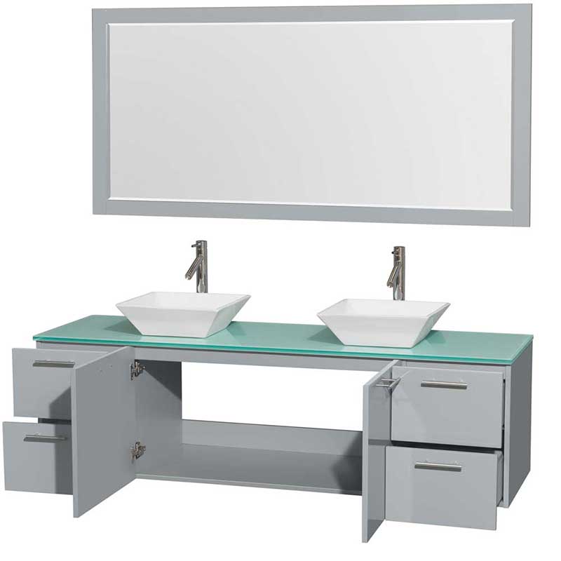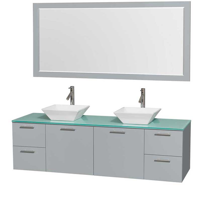 The Amare wall-mounted vanity family delivers beautiful glossy exteriors with modern brushed chrome door pulls. Each vanity provides a full complement of storage areas behind sturdy soft-close doors and drawers. This versatile vanity family is available with distinctive vessel sinks or sleek integrated counter and sinks to fulfill your design dreams. A wall-mounted vanity leaves space in your bathroom for you to relax. The simple clean lines of the Amare wall-mounted vanity family are no-fuss and all style.
