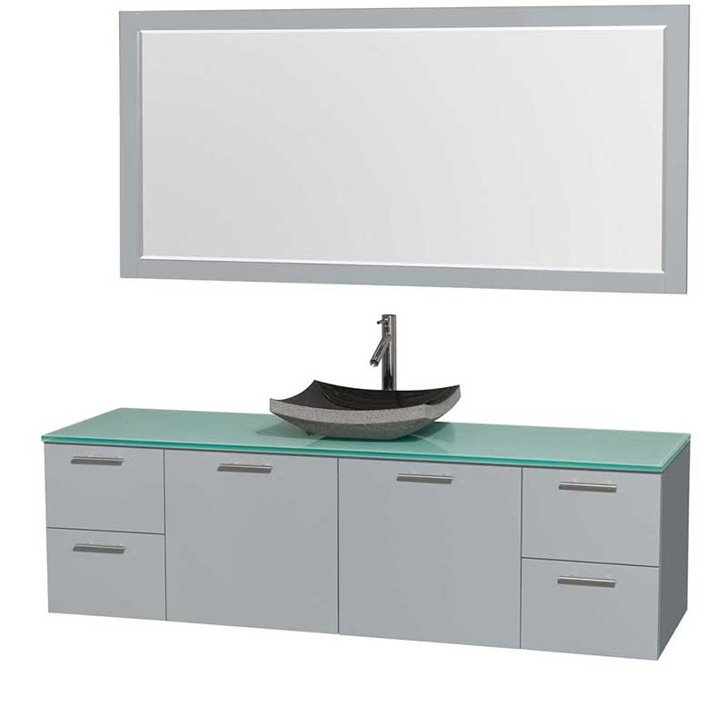 Amare 72" Single Bathroom Vanity in Dove Gray, Green Glass Countertop, Altair Black Granite Sink and 70" Mirror