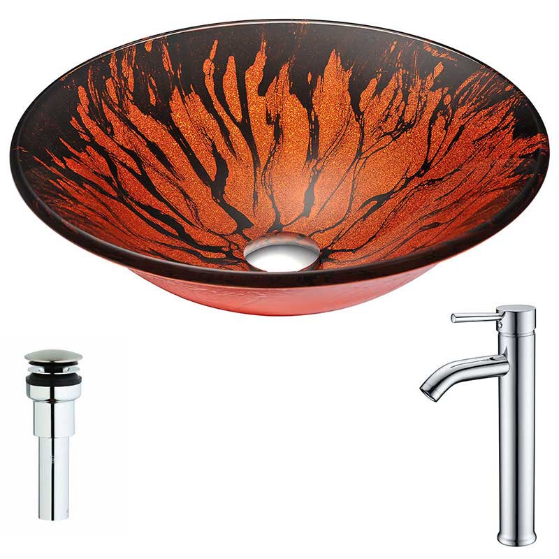 The ANZZI Forte Series sink is a traditionally crafted round vessel sink adorned in a Lustrous Red and Black Finish. Coupled with the ANZZI Fann Vessel Sink Faucet, this combination provides pure elegance in any bathroom. Each ANZZI vessel sink and faucet is formed using RHINO ALLOY certified materials for strength and quality along with high tempered Deco-Glass. The result is a perfectly shaped dynamically captivating vessel and faucet centerpiece for any bathroom counter.- Lustrous red and black finish