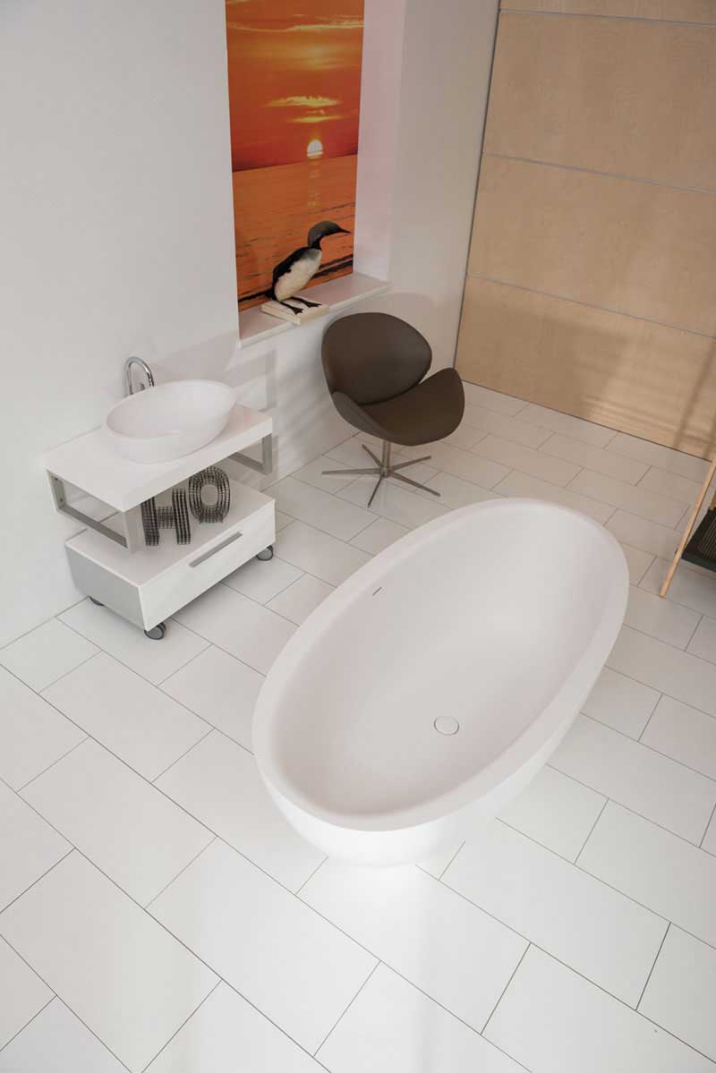 Sensuality Mini™ by Aquatica Freestanding Bathtub. Crafted in Scandinavia, the Sensuality Mini Freestanding Bathtub is the ultimate in indulgent soaking. With gently curving walls and a wide, flat rim, you can lie back and experience one of the deepest, most luxurious tubs on the market. Made of the finest German synthetic resin material, the Sensuality has a creamy look and is velvety to the touch. This tub is almost as much of a pleasure to maintain as it is to soak in.